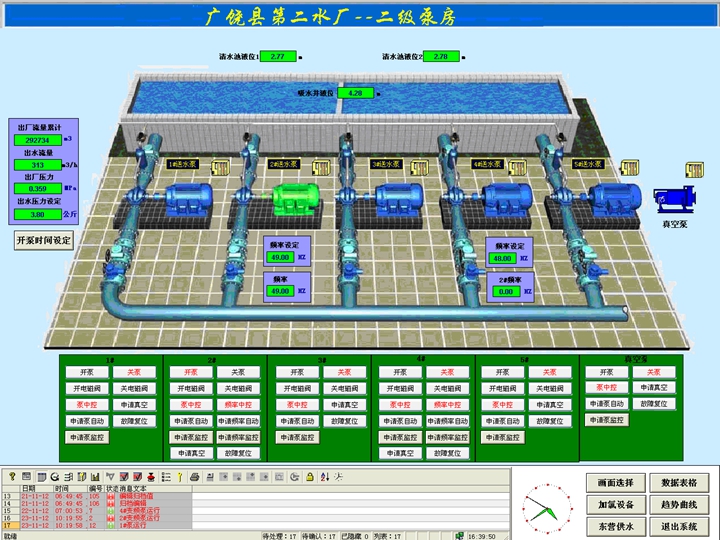 工程規(guī)模:設(shè)計規(guī)模3.5萬噸/日,新建水源井10座,改建原一廠水源井9座,均采用在線遠程監(jiān)測、控制。水廠采用地下水-清水池-消毒-二級泵房的處理工藝。綜合運用GIS技術(shù)、CAD技術(shù)、數(shù)據(jù)庫技術(shù)、網(wǎng)絡(luò)技術(shù)、管網(wǎng)綜合調(diào)度系統(tǒng)(SCADA),建設(shè)了廣饒縣GIS給水管網(wǎng)地理信息系統(tǒng),實現(xiàn)城市給水管網(wǎng)數(shù)字化全覆蓋,實現(xiàn)了城市給水全生產(chǎn)過程的信息化管理。