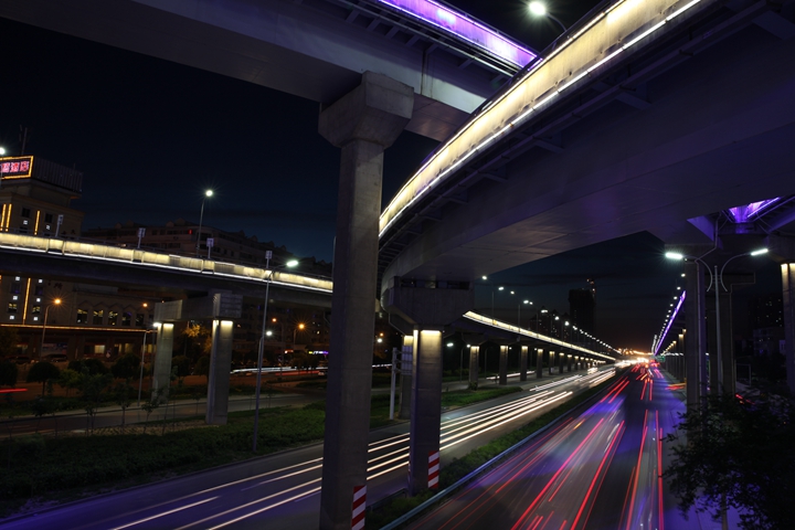 工程規(guī)模:主線高架雙向6車道,為城市快速路;地面機(jī)動(dòng)車道雙向6車道,為城市主干路,寬約10.5m—11.5m,標(biāo)段工程全長(zhǎng)651m。